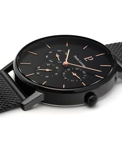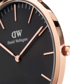 Kim giờ và kim phút cũng được chạm khắc có độ mỏng tinh tế, khiến người đeo có cảm giác nhẹ nhàng và dễ chịu.Tất cả đều được tối giản một cách tinh tế. Thêm vào đó, tông màu vàng kim sang trọng càng nổi bật trên nền đen bí ẩn, khiến cho chiếc đồng hồ Daniel Wellington DW00100125 thật sự như toát lên độ đẳng cấp, quyền lực. Đường kính mặt 40mm là một kích thước rất lý tưởng cho form tay của phái mạnh Việt Nam.
