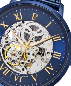 Thuộc bộ sưu tập AUTOMATIC, mẫu đồng hồ nam này có một vỏ tròn màu xanh bằng thép không gỉ với đường kính 42mm. Trong lòng vỏ đồng hồ này là cơ chế tự động với những bánh răng của chuyển động được hiển thị rõ ràng. Mặt số xuyên thấu của đồng hồ nam 318B468 được viền bằng màu xanh lam, tạo nên tính năng động của mẫu đồng hồ này. Các số La Mã màu vàng tạo nên tính xác thực cho mẫu đồng hồ này, cũng như kim giờ và phút được tách rời từ chuyển động.