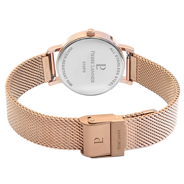 Đồng hồ nữ 010P958 có mặt kính khoáng và chống nước lên đến độ sâu 50 mét! Sự chống nước này được đảm bảo bởi thương hiệu Pierre Lannier. Mẫu đồng hồ nữ 010P958 với dây đeo bằng thép milan mạ vàng hồng của Pierre Lannier sẽ được gửi đến bạn trong một hộp đựng của thương hiệu kèm theo bảo hành quốc tế 2 năm.
