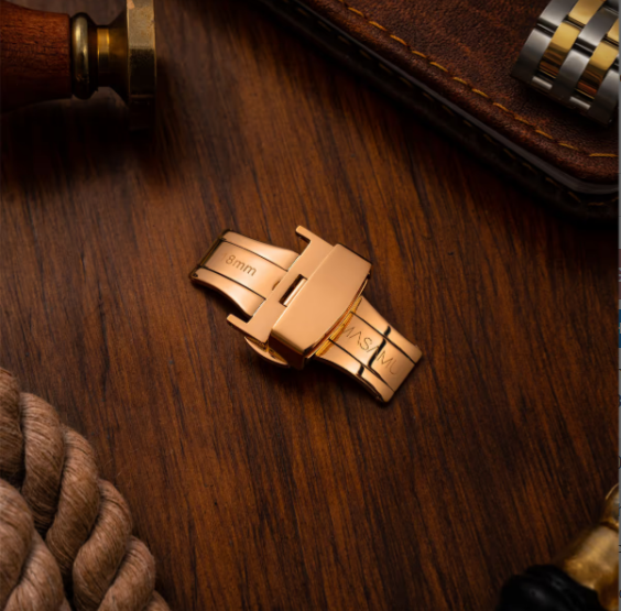 Khóa Bướm Masamu 2 Gấp Cho Đồng Hồ Dây Da Màu Vàng Hồng